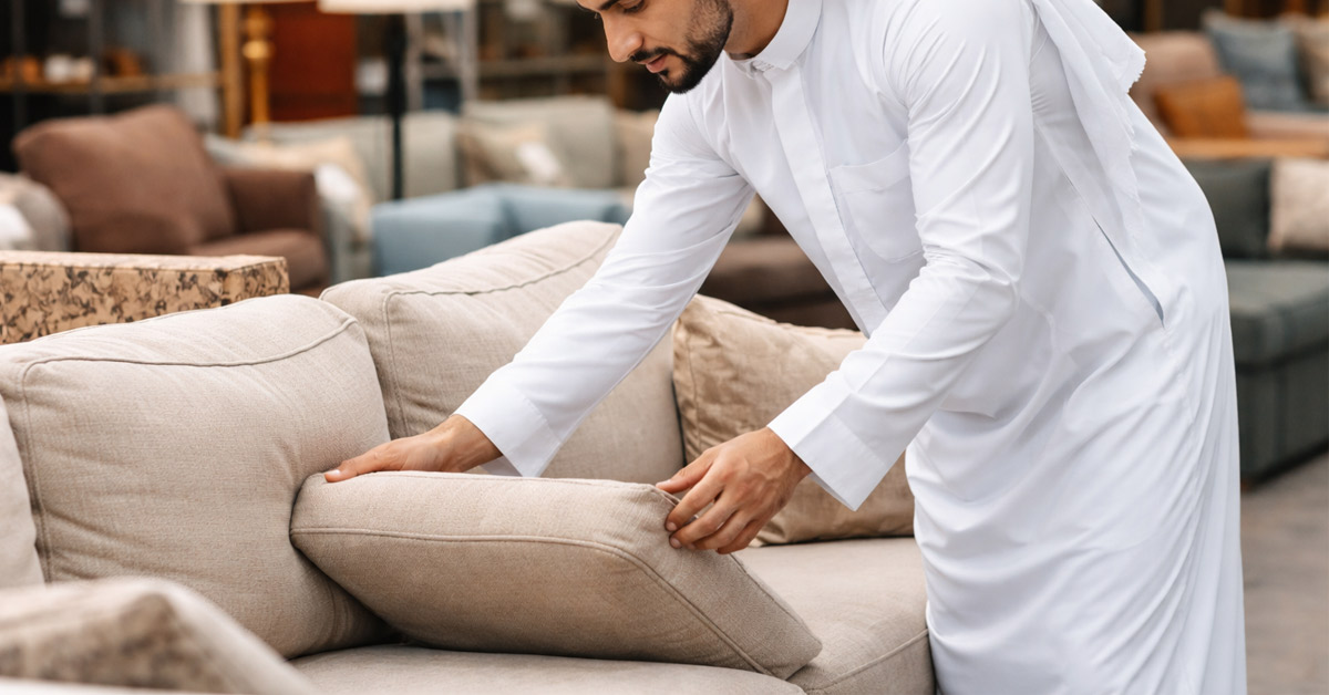 نصيحة: افحص الأثاث جيدًا قبل الشراء — خاصة المفاصل والطلاء والأقمشة.